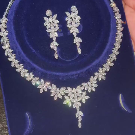 Diamond Naari Crystal Elegant Floral Vine Drop Necklace Set